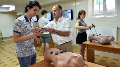 Студенти мали можливість отримати унікальний практичний досвід роботи в навчальному центрі малоінвазивних оперативних технологій під керівництвом асистента Костянтина Походуна та самостійно провести маніпуляції на тренажерах і в умовах експерименту на тварині.