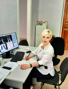 Але особливих причин для занепокоєння, запевняє Іванна Калиняк, немає, адже під час обстежень локально скеровують промені на обстежувану ділянку. Сучасні апарати – це вже нова ера в рентгенології, коли на 90-95 відсотків знижується кількість променевого впливу на людину завдяки скороченню експозиції, бо чутливість датника вища, ніж у рентгенівської плівки. Скажімо, рентген-навантаження для сучасного цифрового панорамного знімка прирівнюється до 10 днів роботи за звичайним комп’ютером. До того ж цифровий рентген-апарат вважають найбезпечнішим для жінок у період вагітності та лактації. Певна річ, коли пацієнта доправляють у стаціонар, обов’язкового вивчають його амбулаторну карту та історію хвороби, всі процедури рентгенографії, які він проходить в університетській лікарні також занотовані. Скажімо, під час роботи ковідного відділення, до рентген-кабінету скеровували пацієнтів з пневмоніями двічі чи навіть тричі на тиждень, аби відстежити динаміку захворювання та призначити коректне лікування. Але доза опромінення була надзвичайно низькою, аби отримати променеве навантаження.