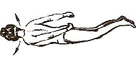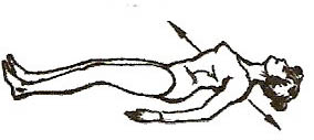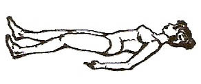 Лежачи на спині з витягнутими ногами (мал. 1, 2). На глибокому вдиху вигнути догори шию та груди. Затримавши в легенях повітря, похитати спиною з боку на бік 2-6 разів. Зробити вільний видих, втягуючи живіт.