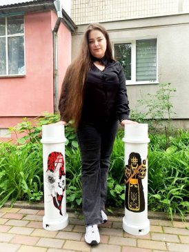 Мала також нагоду долучитися до благодійних ініціатив університету. Моя одногрупниця, волонтерка Світлана Українець знала про моє захоплення малюванням й якось написала мені: «Твій час настав!» Звісно ж, я одразу відгукнулася. Зв’язалася з керівницею Центру виховної роботи та культурного розвитку Мартою Ігорівною Руденко, яка мені й передала дві гільзи для розпису. Я ретельно працювала над ними, старалася, аби якнайкраще розмалювати. Зобразила на них ляльки-мотанки. Адже тоді у виші тривала виставка ляльок-мотанок, тож попросили, аби гільзи були саме в цій тематиці. Це був дуже цікавий та відповідальний досвід, бо мої роботи стали частиною великої справи допомоги.