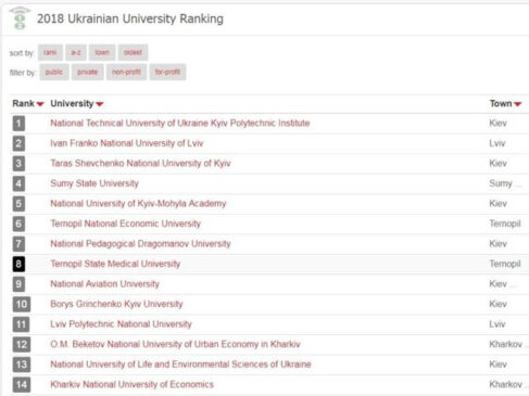 Нещодавно вебометричний рейтинг університетів uniRank (University Ranking) оприлюднив результати за 2018 рік. До переліку найкращих університетів України увійшов 171 заклад вищої освіти нашої держави. Тернопільський державний медичний університет мені І.Горбачевського посів першу позицію серед медичних вишів і восьму – у загальному підсумку. Під час оцінювання діяльності університетів UniRank брав до уваги якість надання освіти, наявність ліцензій на здійснення освітньої діяльності, навчання студентів щонайменше за освітньо-кваліфікаційним рівнем «бакалавр», а також можливість здобути магістерський рівень та навчатися в аспірантурі. Головна мета засновників рейтингу – визначити найпопулярніші українські університети на основі достовірних, неупереджених…