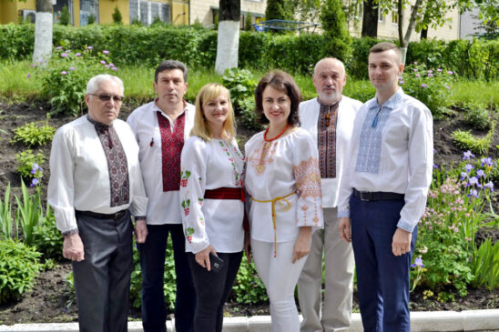 Колектив кафедри у Всесвітній день вишиванки. (Зліва направо): доценти Валерій ДІДУХ та Юрій РУДЯК, ст. лаб. Галина ЧЕРНЕЦЬКА, асист. Оксана БАГРІЙ-ЗАЯЦЬ, доценти Роман ЛАДИКА та Андрій ГОРКУНЕНКО (2018 р.)
