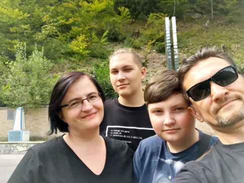 Наталія ЗАВІДНЮК під час подорожі у Карпатах з чоловіком Юрієм, синами Віктором і Владиславом (2019 р.)