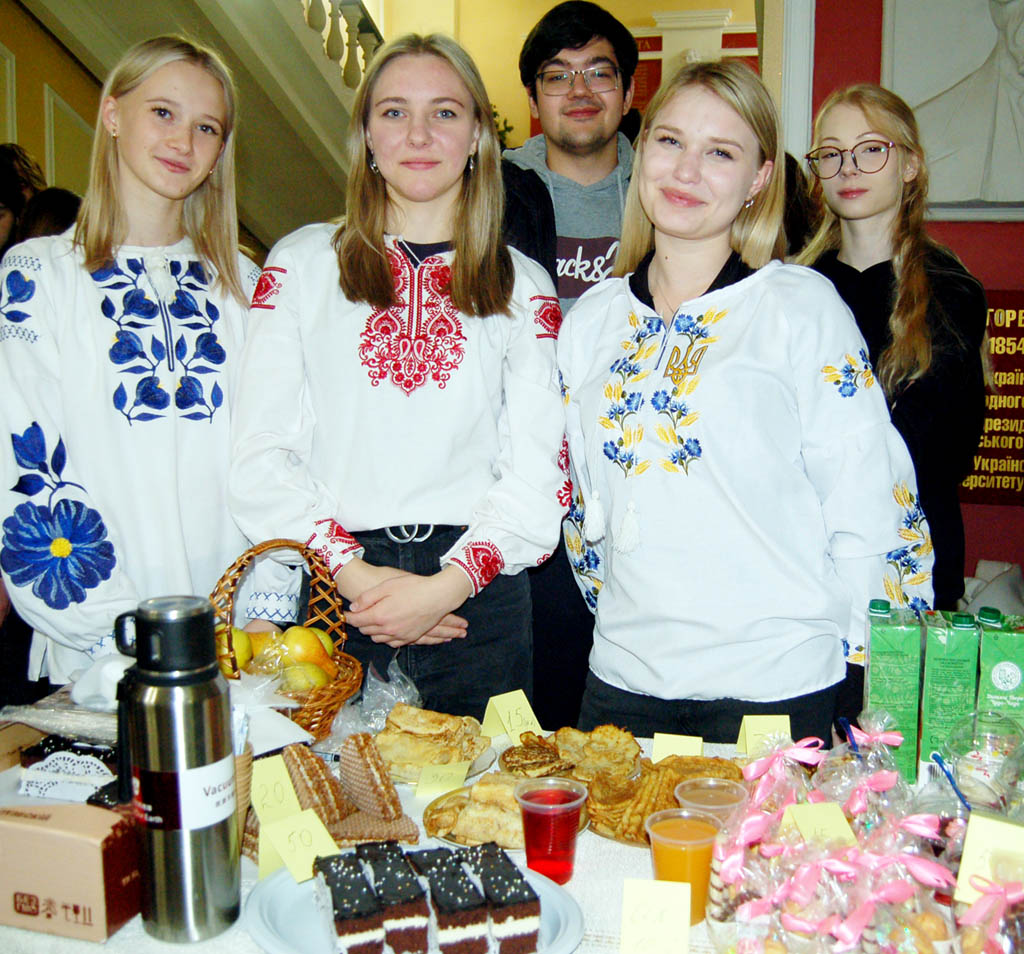 Трішки далі, з такою ж енергією, смаколики продавали представники 305-ї групи. Одна з них, третьокурсниця Даяна Борисюк, розповіла, що їхня група вже має досвід благодійних ярмарків і, готуючись цього разу, вони надихалися думкою про те, що теж долучаються до наближення довгоочікуваної перемоги. Їхній стіл пропонував справжнє кулінарне різноманіття, але один виріб став безумовним хітом. «Найкраще в нас розкупили торт «Наполеон», який розійшовся чи не на перших хвилинах ярмарку. Ми навіть не встигли його до кінця викласти», – сміється Даяна. Дівчина зауважила, що це вже третій рік поспіль їхнього активного волонтерства й вони не планують зупинятися, адже добре розуміють важливість кожного зібраного внеску.