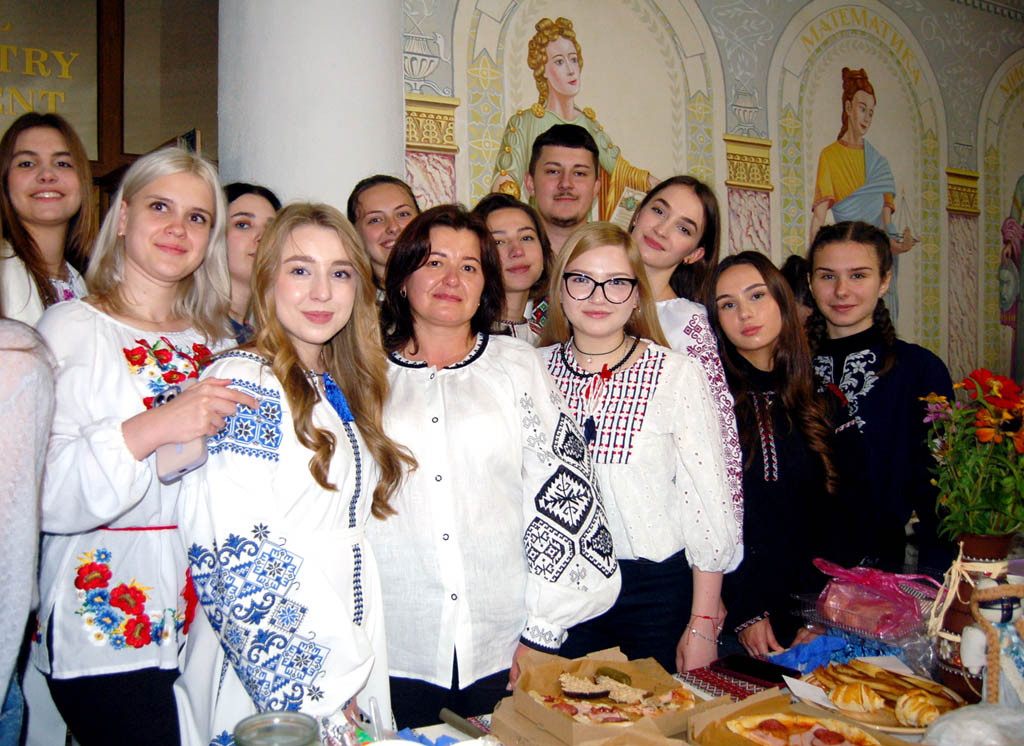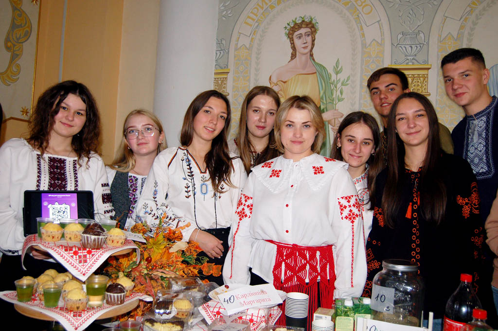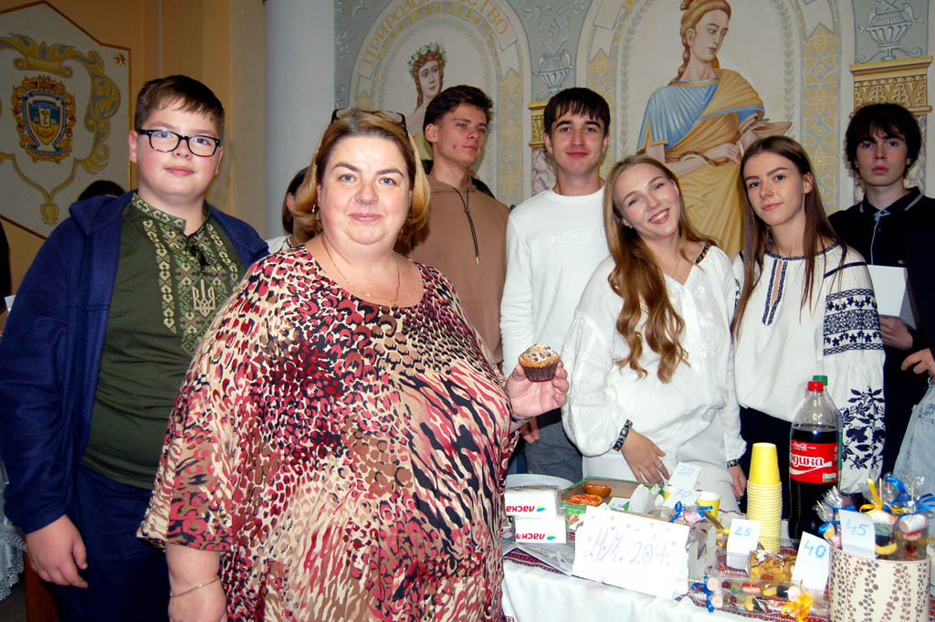 Зробивши спробу, таки, попри численну юрбу, пробралася на другий поверх адмінкорпусу, де також енергійно ярмаркували. Тут до організації долучилися не лише студенти, а й викладачі. Доцентка кафедри української мови, керівниця відділу комунікації та маркетингу Надія Олійник розповіла, що в цьому заході бере участь її кураторська група №207. «Ми вже другий рік поспіль беремо участь в ярмарку й вважаємо, що це дуже шляхетна та важлива справа, адже всі кошти йдуть для військових. І в такий знаковий святковий день важливо проводити тут, у тилу, такі заходи, аби підтримати тих, хто на фронті, завдяки кому маємо змогу жити, навчатися, радіти життю», – мовила Надія Ярославівна.