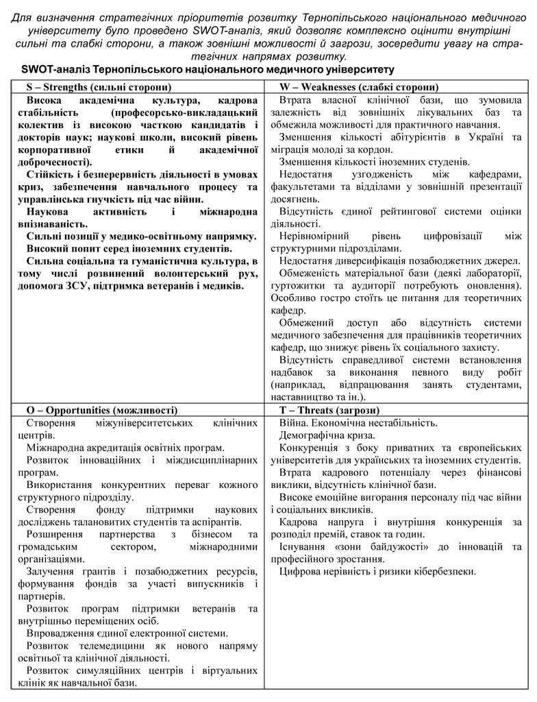 Створення спільних освітніх проєктів з технічними та класичними університетами. Університет має партнерство з такими університетами, але варто розробити TNMU DigitalHealthHub – міжуніверситетську освітньо-наукову платформу для спільних курсів, лабораторій і проєктів у сферах digital-медицини, біоінженерії, медичних даних і психології.