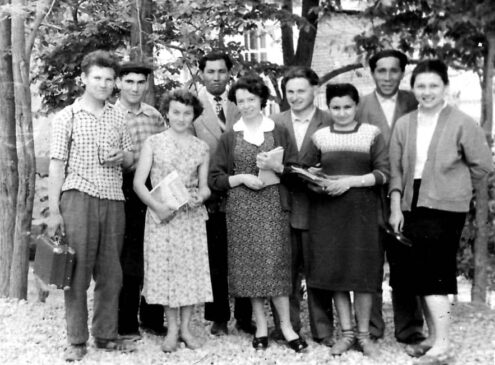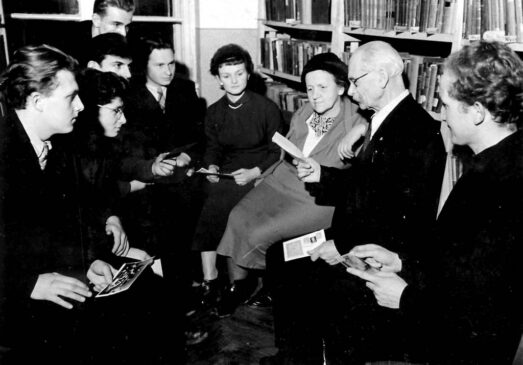 На іншій світлині з архіву професора В. Кондратюка бачимо зібрання гуртка есперантистів у Львові: другий праворуч Анатоль Кох, далі – Ізидора Ваньо (Волощак), п’ятий – студент Володимир Кондратюк, який безпосередньо спілкується з легендарними есперантистами.