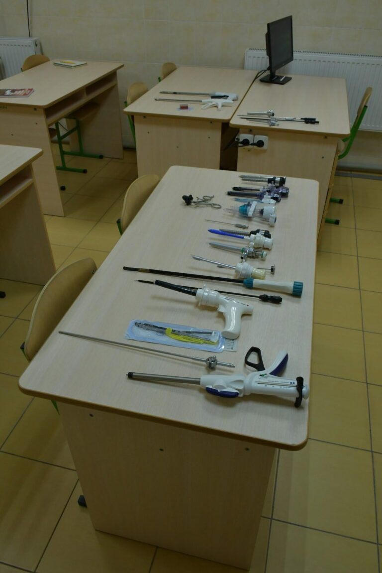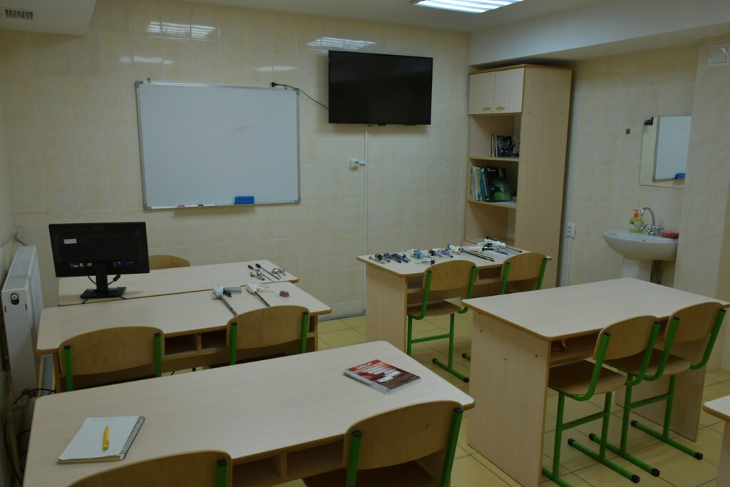 The material and technical facilities include simulators for mastering practical skills, instruments and equipment for laparoscopic interventions (a laparoscopic stand with all technical support), organ complexes, laboratory experimental animals, operating rooms for training, multimedia teaching aids, a video library, a library.