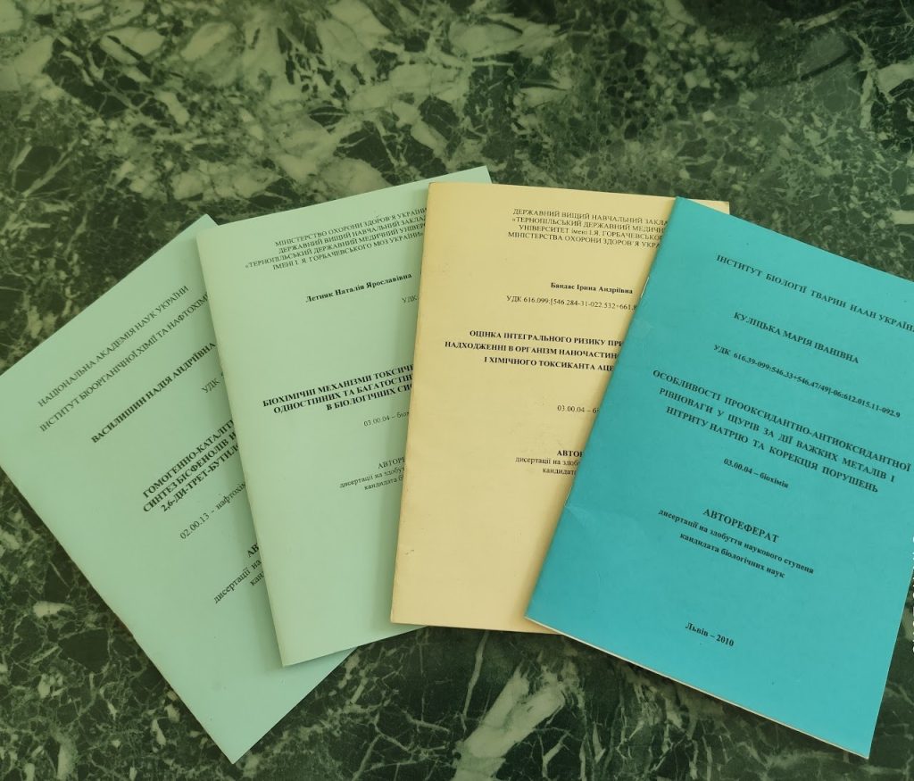 • Biochemical mechanisms of toxicity of nanoparticles of various nature and other anthropogenic and biogenic toxicants in biological systems 2012-2015, supervisor – Prof. Mykhaylo Korda).