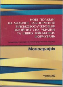7. New views on the medical care of servicemen of the armed forces of Ukraine and other military formations / I.A. Lurin, A.M. Halushka, A.Yu. Kich, M.M. Korda, S.Y Zaporozhan. – Ternopil: TDMU, 2015. – 140 p.