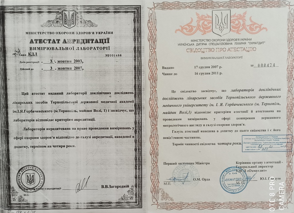 The scientific laboratory of the Department of Pharmacology became the first laboratory in our University that was accredited by the Ministry of Health of Ukraine to conduct preclinical research of medicinal products (the Head of the laboratory – Prof. K. Posokhova).