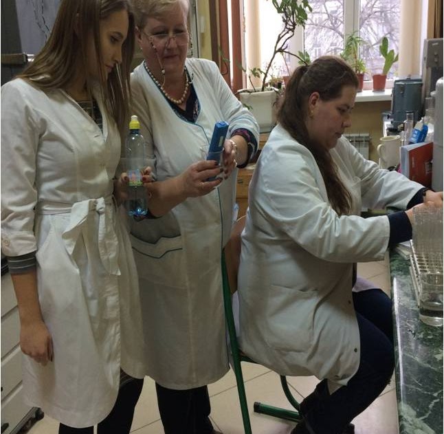 Students of the 3rd year of the medical faculty – SSS  members of the Department of General Hygiene and Ecology conduct a laboratory study of water (2007)