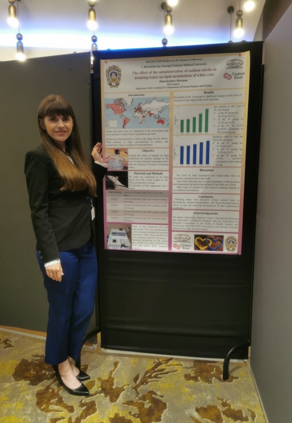 In 2023, the Annual Conferences of the RECOOP HST Association – 5th RECOOP International Student Conference and 18th RECOOP Bridges in Life Sciences Conference, as well as the 8th RECOOP Sciences and Arts Exhibition, were held in Budapest (Hungary), in which department’s PhD students Maryana Danchyshyn and Yuliya Bandrivska took part (supervisor – Prof. Olena Lototska).