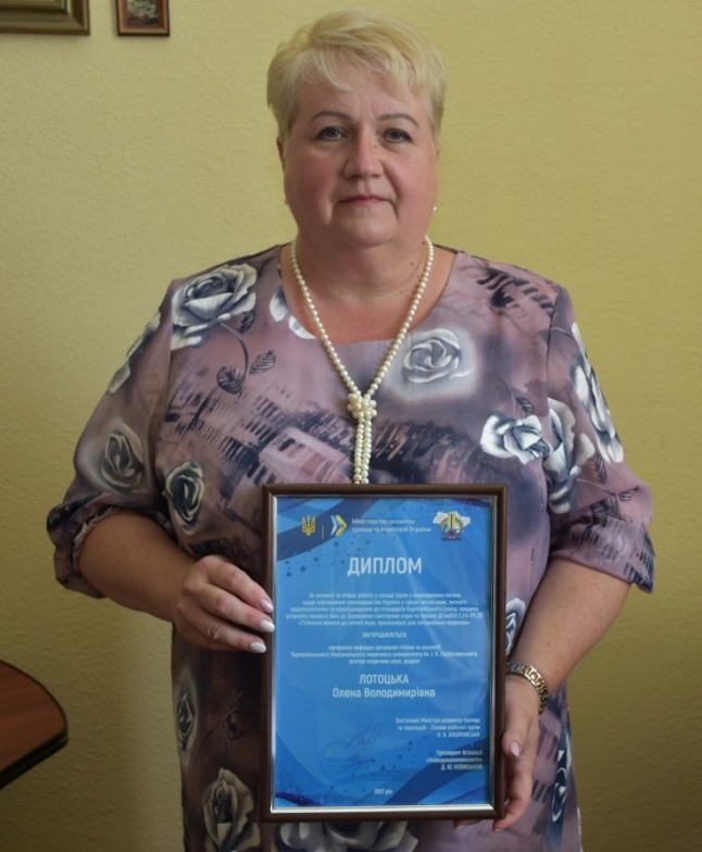 Teachers of the Department of General Hygiene and Ecology are also involved in other types of work. Department Professor Olena Lototska was a member of the working group of the Ministry of Community Development and Territories of Ukraine on the development of a new national regulatory document on the quality of drinking water for the purpose of implementing Directive 98/83/EU, for which she was awarded a diploma (2021).
