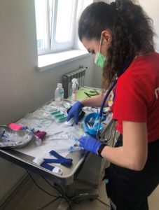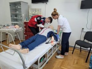 Студенти 2 курсу медичного факультету відпрацьовують застосування назофарингіальної трубки на манекені
