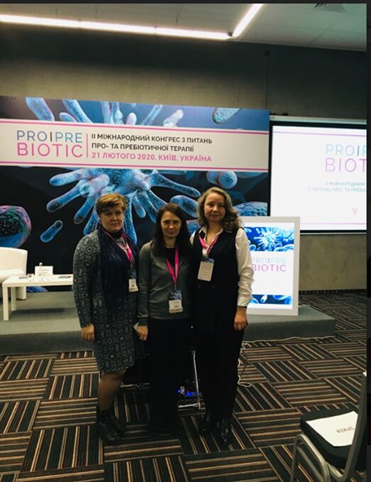 Доц. Романюк Л. Б., доц. Кравець Н. Я та доц. Олійник Н. М. – учасники  конгресу PRO/PRE BIOTIC ІІ, м. Київ  (2020 р)