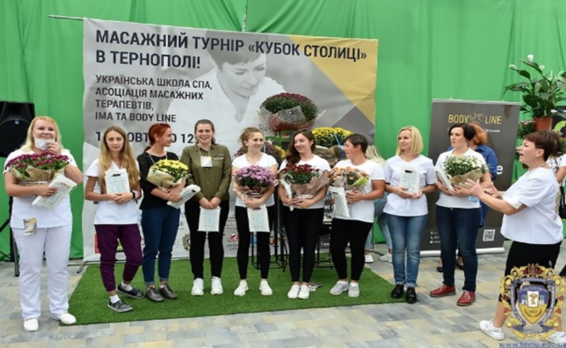 Викладачі та студенти спеціальності «Фізична терапія, ерготерапія» на І-му масажному турнірі «Кубок столиці» (2020 р.)