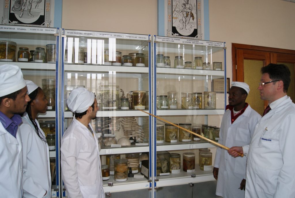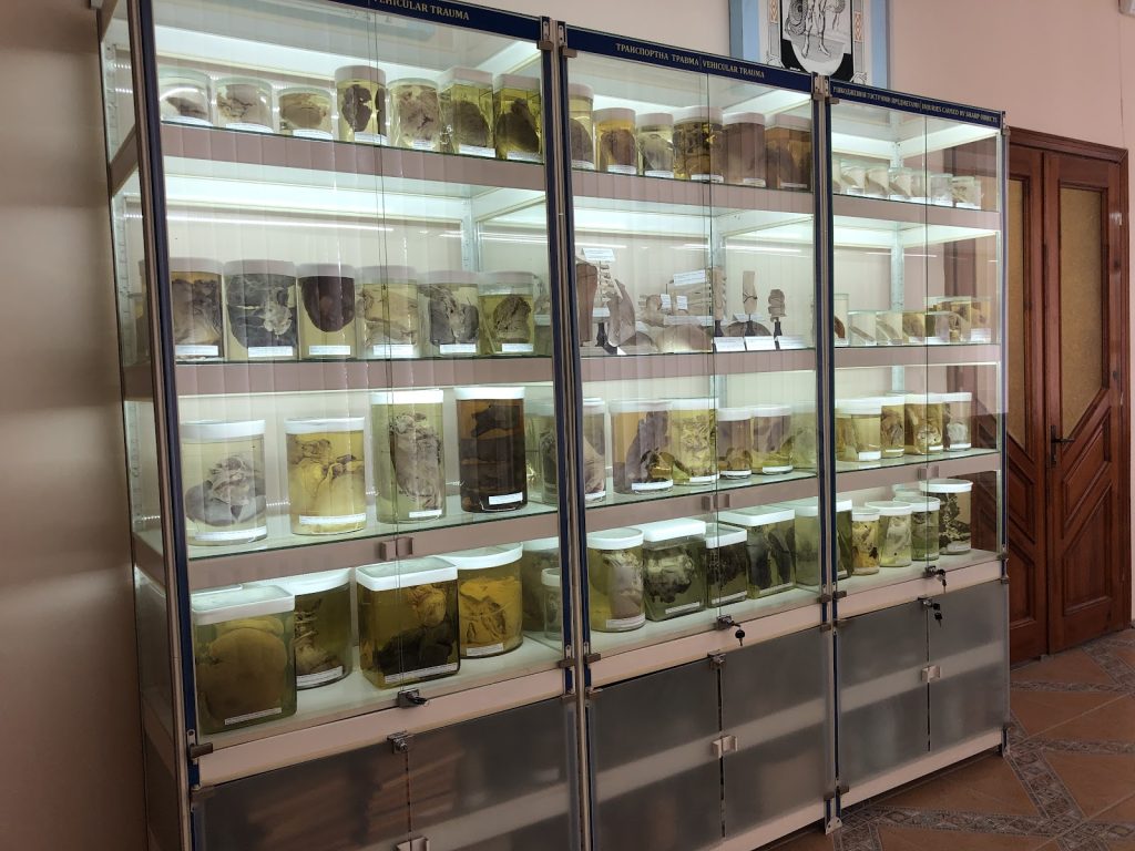 A fragment of the exposition of specimens in the museum of the Pathologic Anatomy with Autopsy course and Forensic Pathology