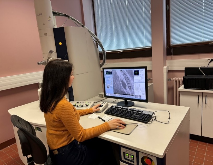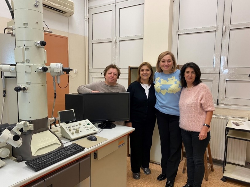 В лабораторії електронної мікроскопії з грецькими колегами. Японський електронний мікроскоп «Jeol» активно використовується для досліджень в лабораторії гістології-ембріології (2023 рік)