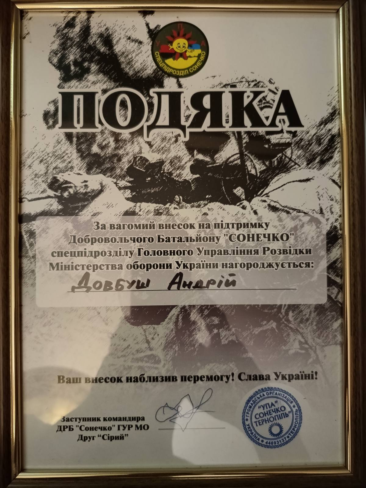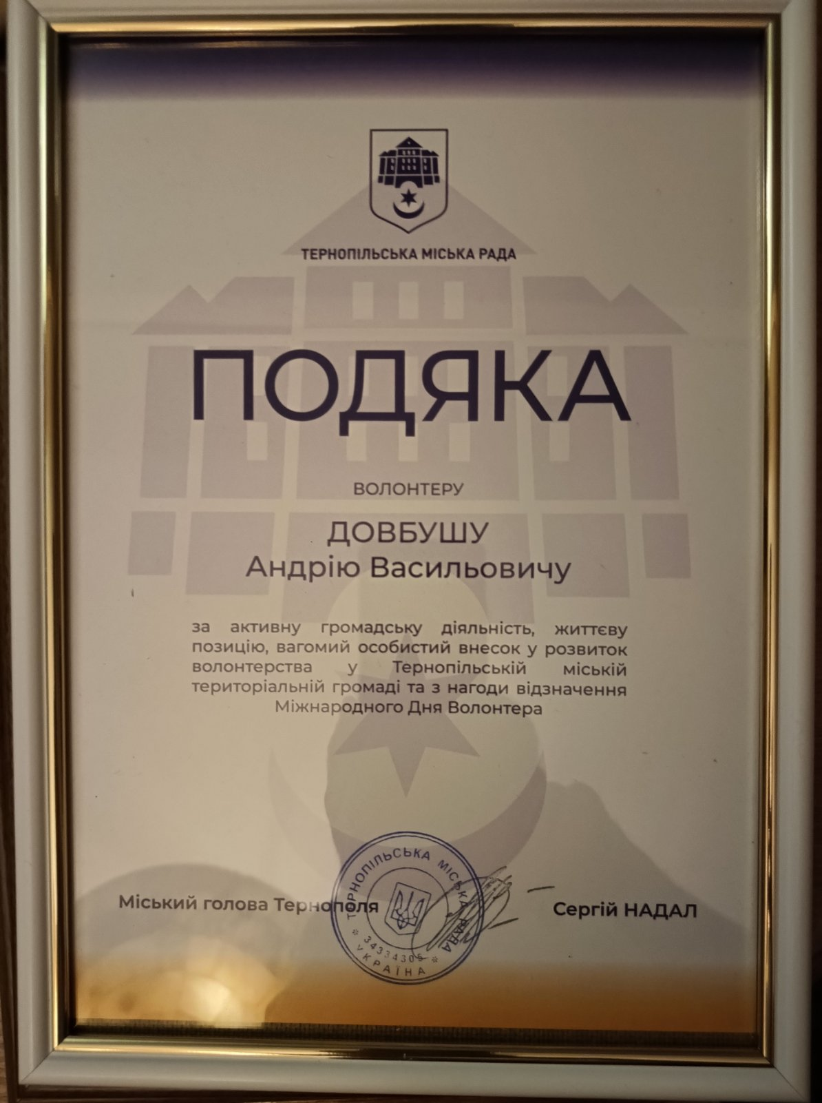 Від початку повномаштабного вторгнення Андрій Довбуш разом зі студентами активно займається волонтерською діяльністю, зокрема в благодійному фонді «Штаб Перемоги».