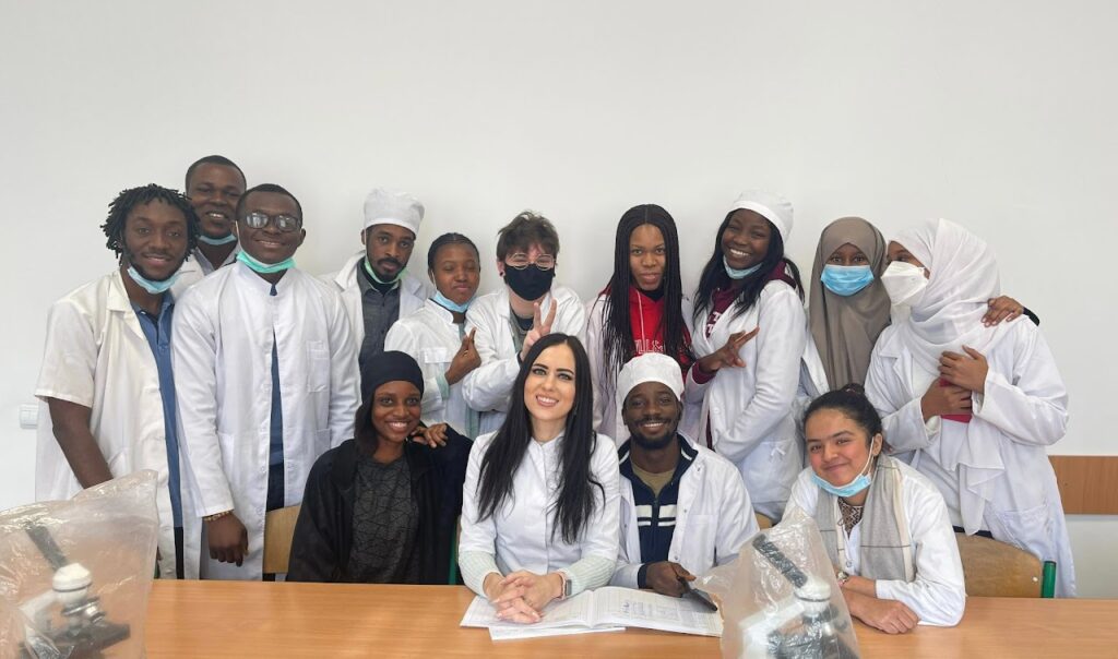Асистент Віолетта Кульбіцька із здобувачами освіти факультету іноземних студентів при проведенні виховного заходу на тему ” Історія та традиції українського народу” (2022 рік)