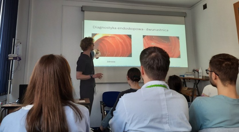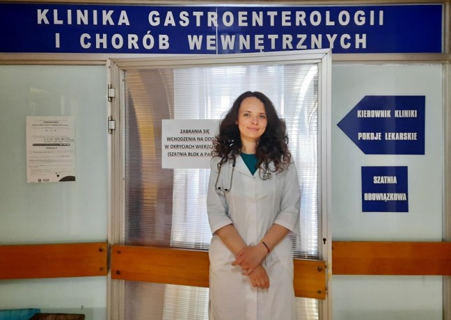 Сабат Зоряна, аспірантка четвертого року навчання кафедри терапії та сімейної медицини, працювала у двох відділеннях. Першим етапом було фахове стажування в клініці гастроентерології та внутрішніх хвороб на базі лікарні Банаха у Варшаві під керівництвом професора Адама Пшибилковського (Adam Przybyłkowski) .