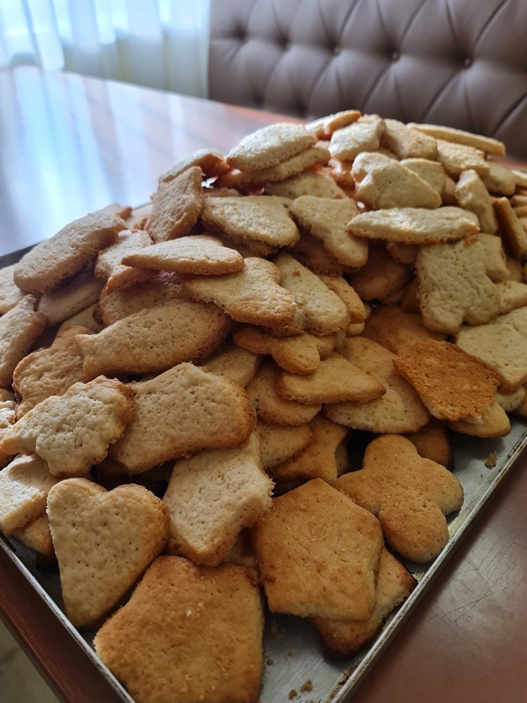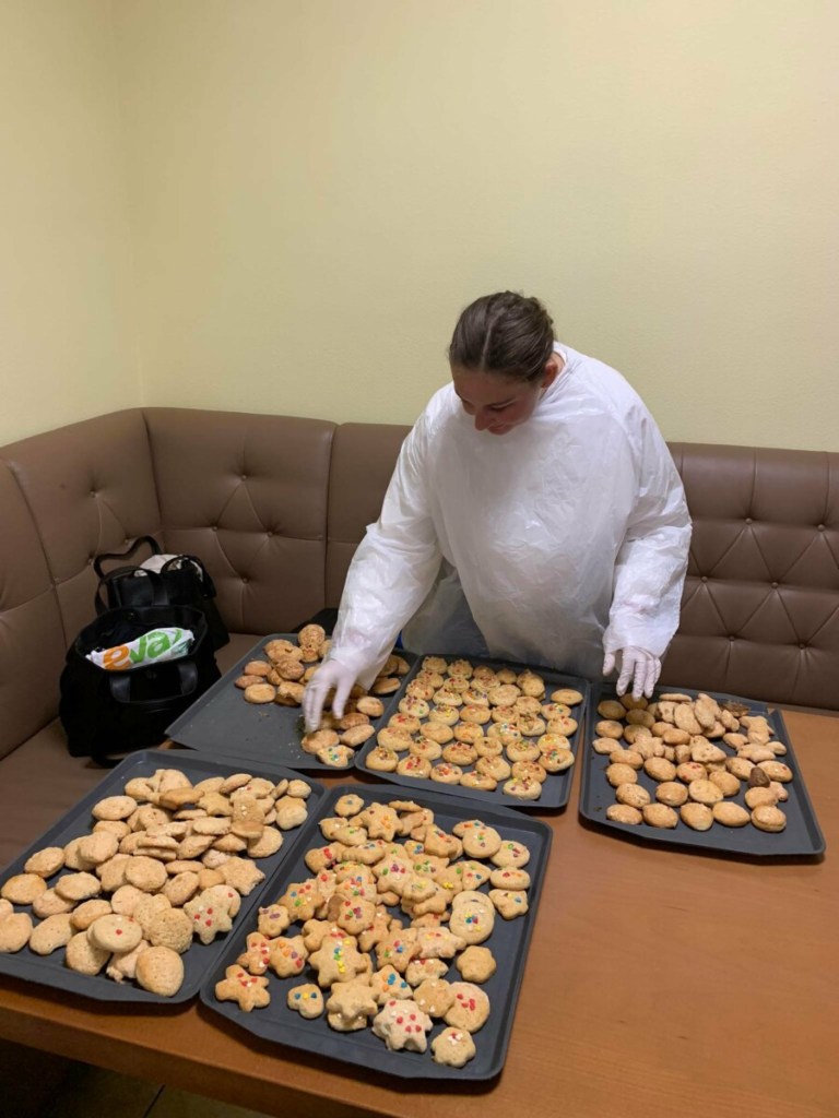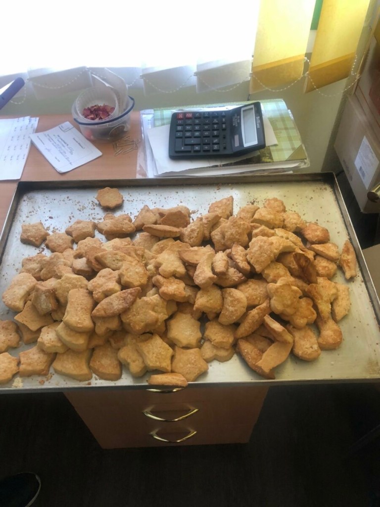 На жаль, вимикання світла – планові та позапланові – значно утруднюють нашу роботу. Тому далі печиво продовжили випікати вже удома педагоги з кафедри іноземних мов – професорка Надія Федчишин, доцентка Іванна Ворона, доцентка Марта Руденко