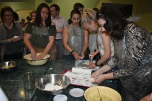 Після обіду цього дня українські викладачі та студенти провели майстер-клас з ліплення вареників. Канадійці з Едмонтона добре знають українську кухню, адже там проживає велика українська діаспора. Та власноруч замісити тісто та зліпити вареника більшість з них спробували вперше. Всі старалися, командна робота вже була налагоджена – тож ніхто не залишився голодним!