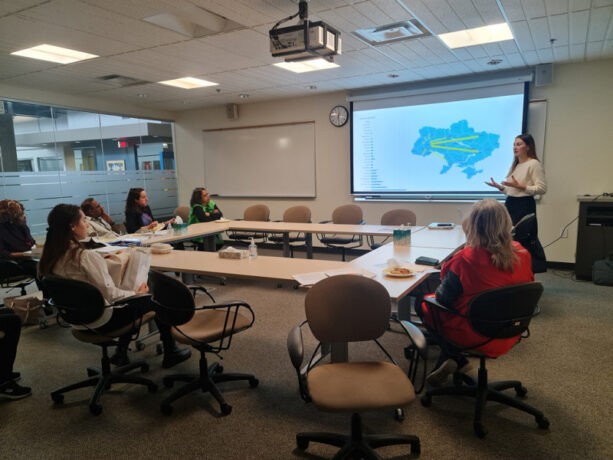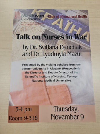 During the internship of Svitlana Danchak, the Director of the Academic and Research Institute (ARI) of Nursing, and her deputy Lyudmyla Mazur, a meeting was held with teachers, students of MacEwan University and members of the public representing the Ukrainian diaspora of the province of Alberta.