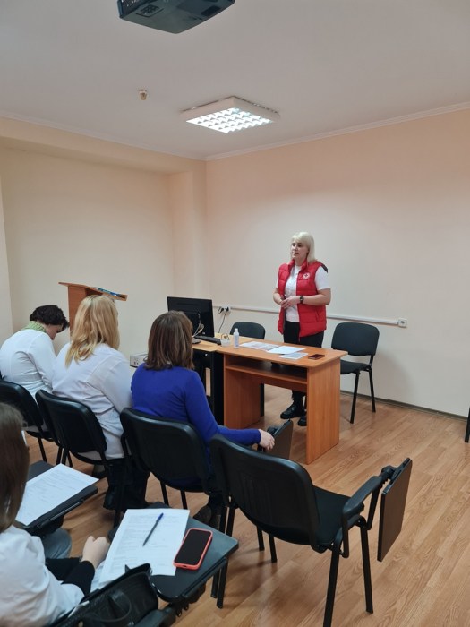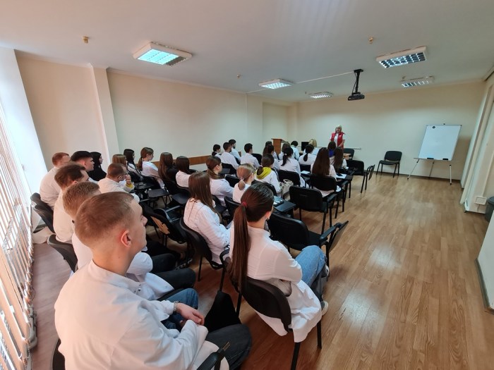 Students and teachers listened to a lecture by Maria Levytska, a psychologist of the Red Cross Ukraine Society, on the topic “Nonviolent communication between teenagers, the causes of conflicts and ways to prevent them.” The lecture was delivered within the framework of the project “Improving access to quality primary health care, home care, first aid for the conflict-affected population in Ukraine and strengthening the capacity of the Red Cross Ukraine Society in the field of emergency response and financial management” (supported by the Norwegian Red Cross).