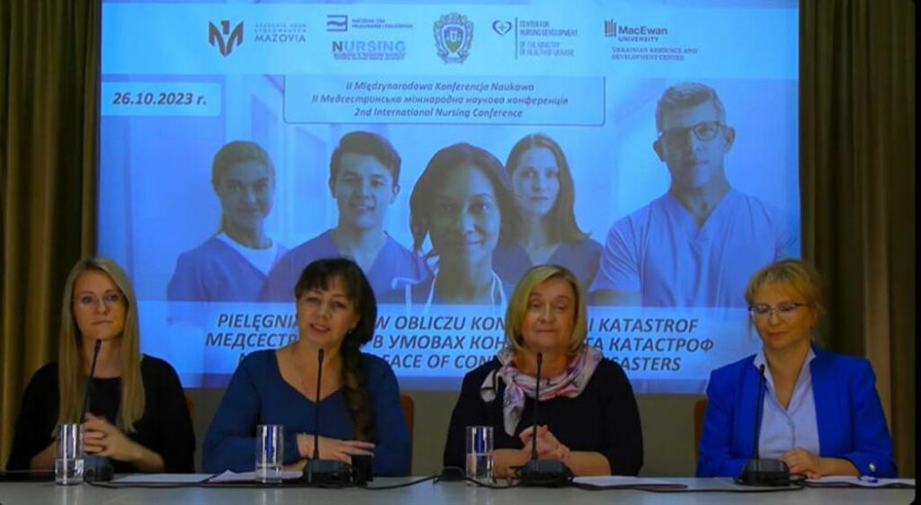 On October 26, 2023, the 2nd Nursing International Research Conference “Nursing in the Conditions of Conflicts and Disasters” was organized jointly with the Academy of Applied Sciences Mazovia (Siedlce, Poland) and the Ukrainian Resource and Development Centre and MacEwan University (Edmonton, Canada).