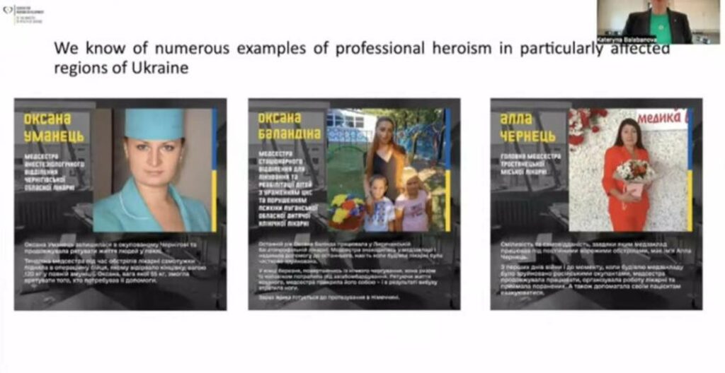 Kateryna Balabanova, Director of the State Institution “Nursing Development Centre of the Ministry of Health of Ukraine”, made a video address on the topic “Voice of Ukrainian Nurses”, in which she talked about the condition and problems of nurses in Ukraine during the war.
