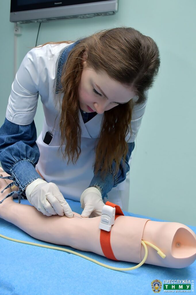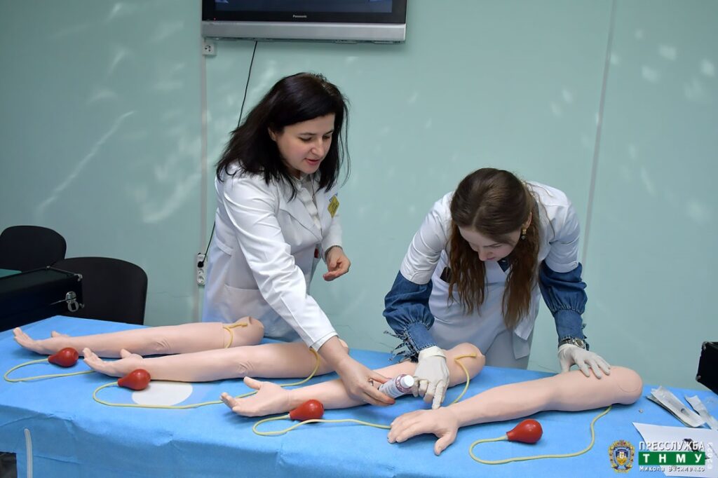In January 2023, as part of the aforementioned cooperation, TNMU received as a gift six Arterial Stick Arm Kit® sets for intravenous injections, which give an opportunity to master practical skills by the university students in the Academic and Research Institute of Nursing and Simulation Training Centre. By the way, the latter is equipped with a separate clinical skills room named after McEwan University, in which, in addition to the Arterial Arm Stick Trainer, there are other mannequins for mastering practical skills, including the multi-functional Nursing Kelly mannequin with the SimPad® system.