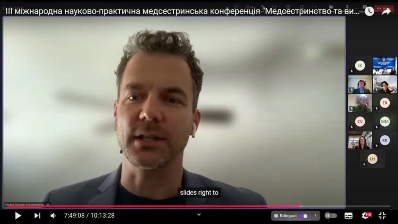 Стефен Ді Донато (Stephen Di Donato) з Thomas Jefferson University виступив з доповіддю про важливість створення безпечного освітнього середовища в медсестринстві, яке базується на відкритому діалозі та емоційній підтримці.