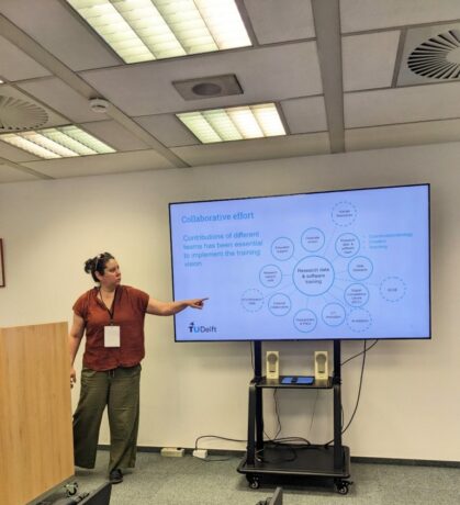Speakers from TU Delft — Paula Martinez Lavanchy, Carla Strubbia, and Bjørn Bartholdy — discussed the role of libraries as training centers for data and software management, as well as the support system for researchers through Data Stewardship.