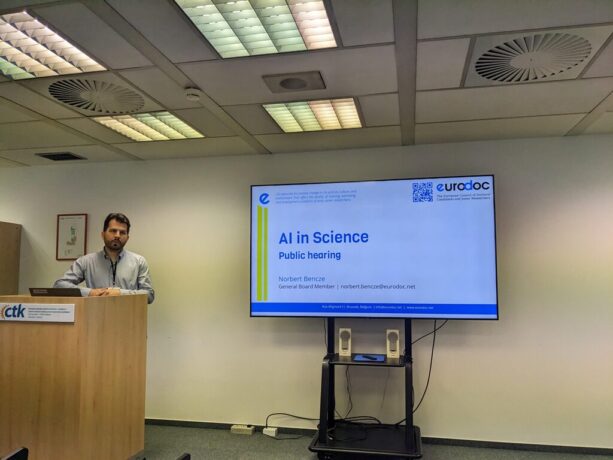 A separate session was dedicated to the opportunities and risks of using artificial intelligence in research and research assessment, presented by Norbert Bencze from Eurodoc.