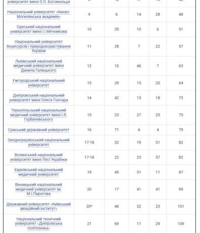 The consolidated ranking of Ukrainian higher education institutions for 2025 has been published on the educational information platform Osvita.ua (https://osvita.ua/vnz/rating/51741/). The ranking is based on data from the most authoritative national rankings of Ukrainian educational institutions: Top 200 Ukraine, Scopus, and NMT Score for Contract Admission.