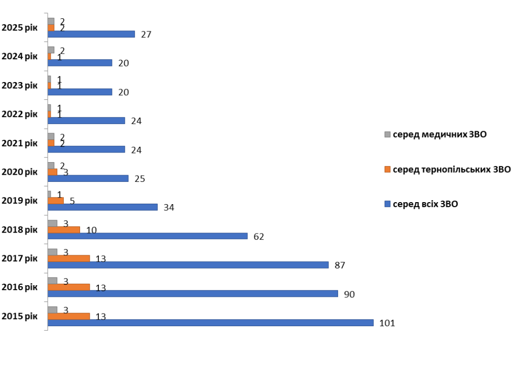 Рейтинг складено за показниками попереднього (2024) року. Серед 200 проранжованих університетів Тернопільський національний медичний університет імені І.Я. Горбачевського зайняв: