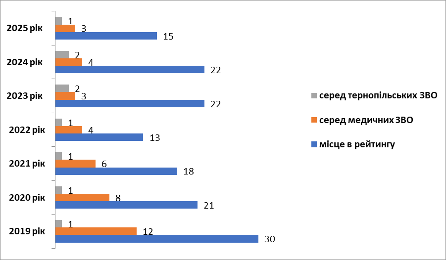 У 2025 році Тернопільський національний медичний університет імені І.Я. Горбачевського зайняв: