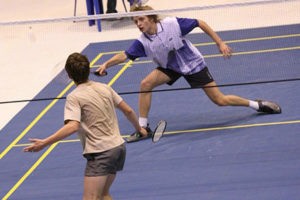 Бадмінтон (англ. badminton) – один з ігрових видів спорту. Змагання проводиться на майданчику 13,40х6,10 м (для парної гри) або 13,4х5,2 м (для одиночної гри), яка розділена навпіл сіткою (висота 1,55 м). Ігрове поле крайніми лініями (праворуч і ліворуч), а також задніми лініями. Крім того, на відстані 1,98 м від сітки розташована лінія подачі, разом із задньою лінією обмежує зону подачі, розділену навпіл центральною лінією.